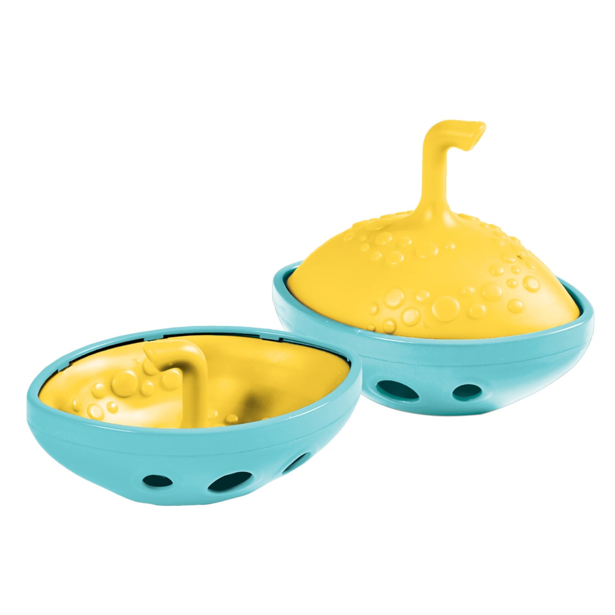 浮かばせたり、沈ませたりと遊び方で、2種類の乗りものに変身するバストーイです。