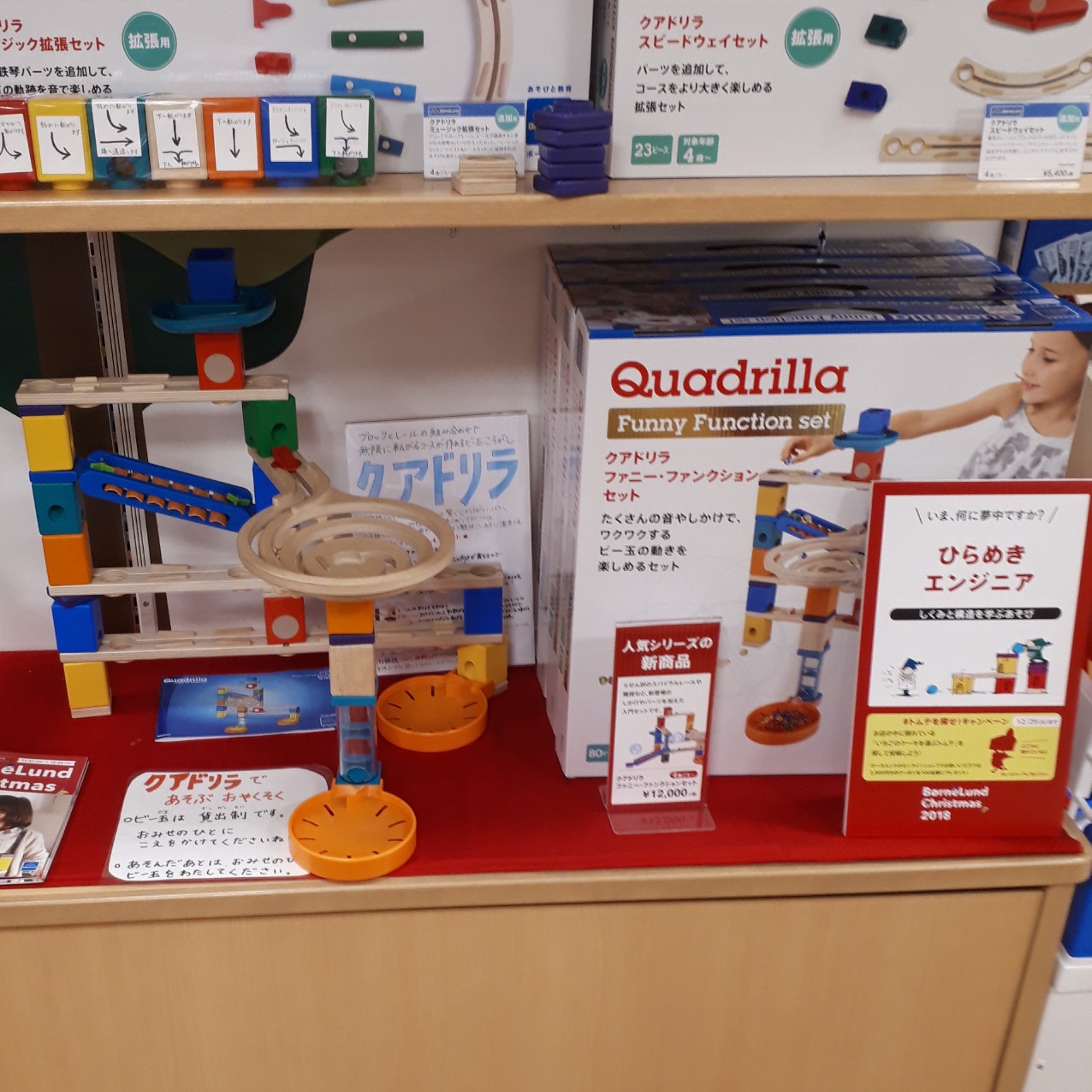 こんにちは。 12月になりましたね。 今日はXmasプレゼントにもおすすめの新商品のご紹介です。 クアドリラ ファニー・ファンクションセット 12000円+税 クアドリラのようなビー玉転がしは、シンプルなくり返し遊びに思えますがあそびの中に子どもが夢中になる法則がたくさん。 試行錯誤をくり返すことで、構造や加速、摩擦など物理理論を感覚的に学ぶことができます。 新商品のファニー・ファンクションセットは、らせん状のスパ…続きを読む